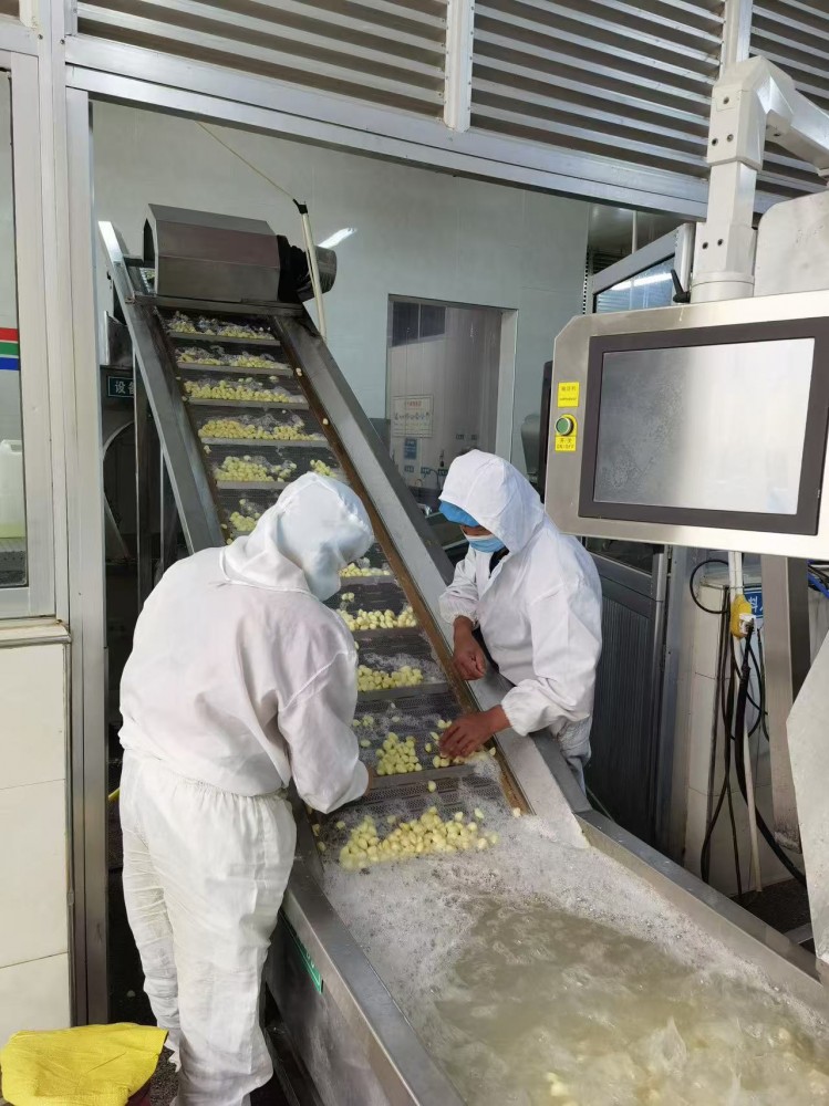 采用:顏色潔白、蒜瓣大而整齊的白皮大蒜品種,從中選擇豐滿充實(shí)、蒜瓣完整、無(wú)蟲(chóng)傷、無(wú)霉?fàn)€的大蒜頭。